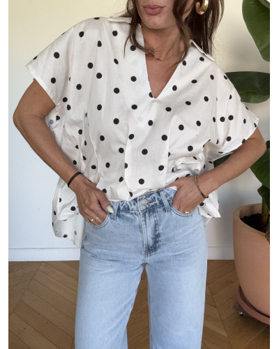 Supprimer du panier Liste de souhaits Quick view Panier Comparer blouse pois blanc Blouses et Chemises Prix 29,90 € Taille unique Blouse coupe ample smokée devant dispo en taille unique matière 100% coton