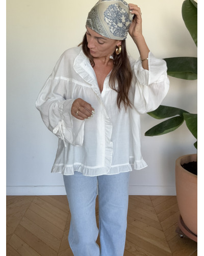 Supprimer du panier Liste de souhaits Quick view Panier Comparer chemise Brigitte Blouses et Chemises Prix 35,00 € Taille unique chemise en coton leger coupe ample avec volants dispo en taille unique matière 100% coton