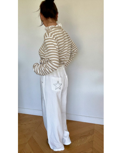 Supprimer du panier Liste de souhaits Quick view Panier Comparer pantalon fluide beige Pantalons Prix 29,00 € Taille unique pantalon fluide avec nervures centrale taille élastique avec liens pour serrer dispo en taille unique matière 78% polyester 18%...