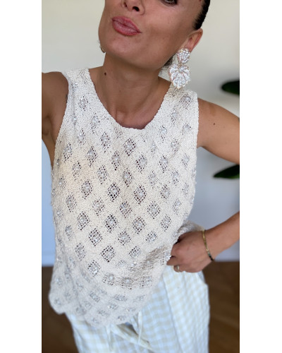Nouveau Supprimer du panier Liste de souhaits Quick view Panier Comparer top crochet sequins Tops et T-shirts Prix 39,00 € Taille unique top en crochet beige detail sequins argent dispo en taille unique matière 100% coton