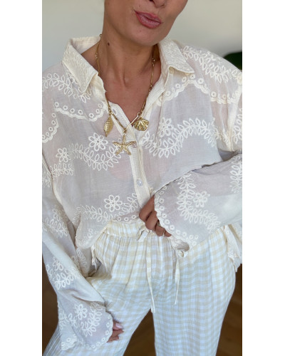 Nouveau Supprimer du panier Liste de souhaits Quick view Panier Comparer chemise broderie Blouses et Chemises Prix 32,00 € Taille L S/M chemise en voilage et broderie coloris beige dispo en S/M ou M/L matière 100% coton