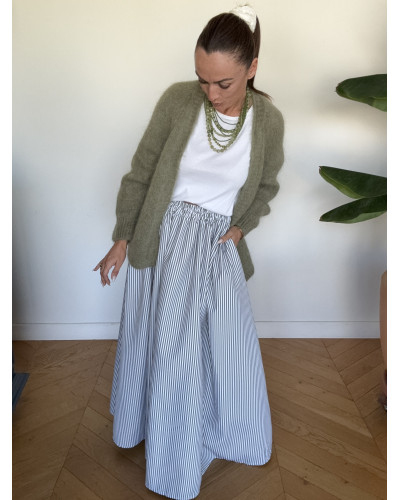 Nouveau Supprimer du panier Liste de souhaits Quick view Panier Comparer jupe longue kaki Jupes et Shorts Prix 29,90 € Taille unique jupe longue effet popeline rayure kaki ecru poches sur coté dispo en taille unique matière 100% polyester