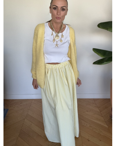 Nouveau Supprimer du panier Liste de souhaits Quick view Panier Comparer jupe longue jaune Jupes et Shorts Prix 29,90 € Taille unique jupe longue avec poches effets popeline dispo en taille unique rayure jaune ecru matière 100% polyester