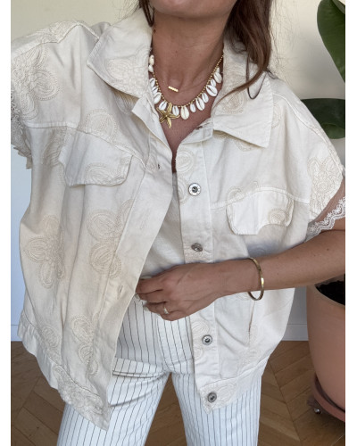 Nouveau Supprimer du panier Liste de souhaits Quick view Panier Comparer veste brodées beige Vestes Prix 39,90 € Taille unique veste sans manches toile de jeans fleurs brodées dispo en taille unique matière 100% coton