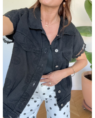 Nouveau Rupture de stock Supprimer du panier Liste de souhaits Quick view Panier Comparer veste brodées noir Vestes Prix 39,90 € Taille unique veste toile de jeans sans manches fleurs brodées coupe large dispo en taille unique matière 100% coton
