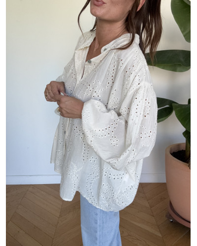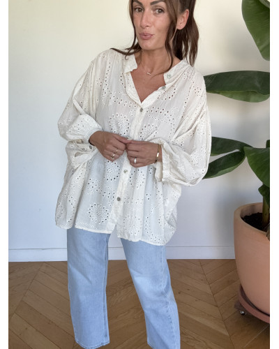 chemise broderie beige